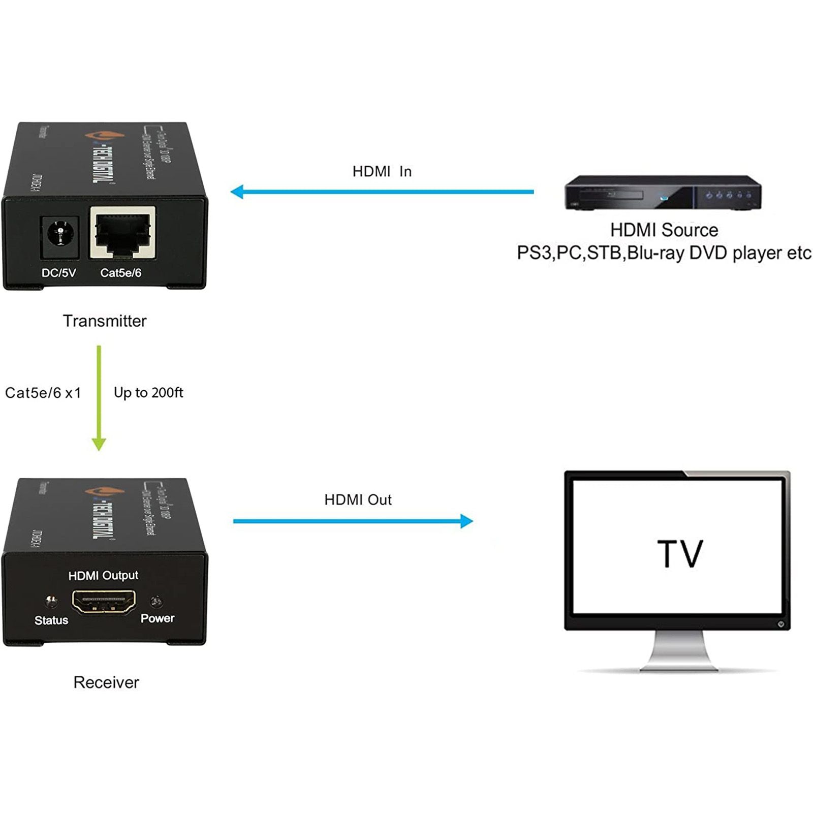 J-Tech Digital HDMI Extender by Single Cat5e/Cat6/Cat7 Cable 1080p 200ft